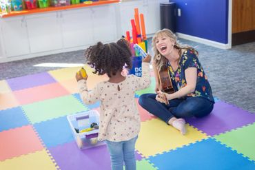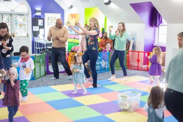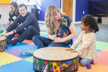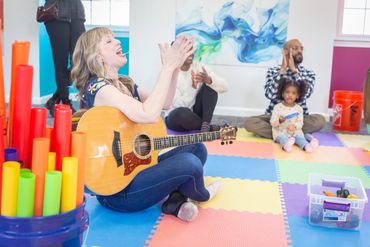 Accelerando Music offers a wide range of services, including group music classes, individual and group music lessons, music therapy classes and lessons, birthday parties, summer camps, and community events like their popular monthly Open Mic Night, held on the first Friday of every month. While Katie initially focused on working with young children, Accelerando has since grown to provide music programs for individuals of all ages.
