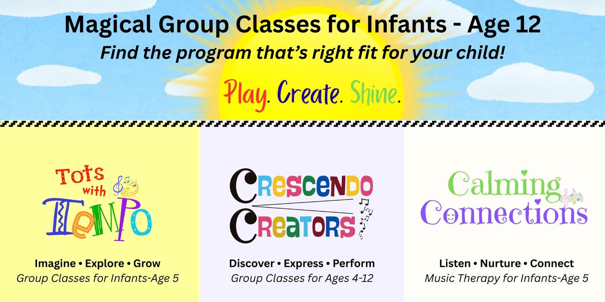 Tots with Tempo is our award-winning early childhood music program for babies, toddlers, and preschoolers in Alexandria, Arlington, and the D.C. area. Through joyful singing, dancing, and hands-on instrument play, children imagine, explore, and grow in a nurturing, play-based environment that builds rhythm, language, and confidence—one musical beat at a time. Choose an age-specific class or our mixed-age model.